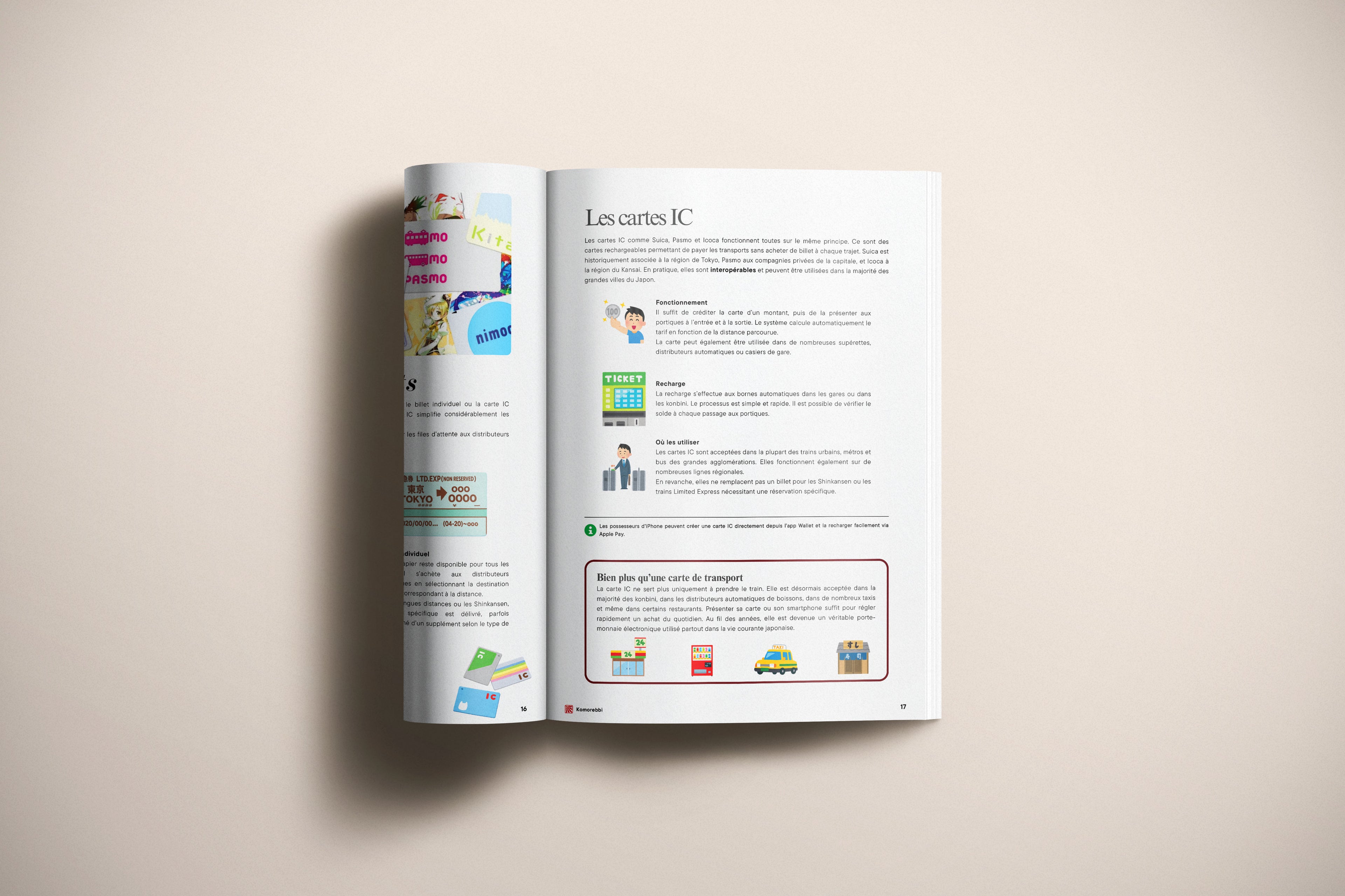 Du Shinkansen décrypté dans ses moindres détails — classes, réservations, bagages, wagons non réservés — aux subtilités du métro de Tokyo et aux bus ruraux qui ouvrent les régions les plus reculées : chaque moyen de transport est expliqué clairement, avec les réflexes concrets qui font la différence sur le terrain. JR Pass ou pas ? Bus de nuit ou train rapide ? Carte IC ou billet papier ? Le guide vous aide à trancher selon votre itinéraire, pour circuler au Japon en toute autonomie — du quai bondé de Shinjuku aux petites lignes de montagne.